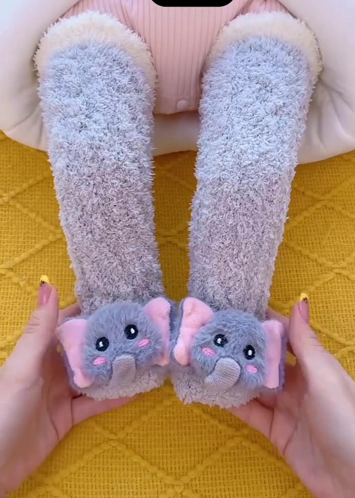 Baby fleece socks, baby winter socks, newborn warm socks, infant anti slip socks, cute baby socks, elephant baby socks, plush baby socks, winter socks for babies, soft baby foot wear, baby grip socks, baby indoor socks.