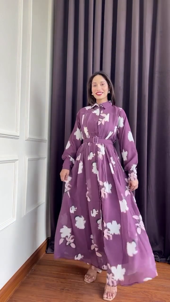 Elevate your everyday elegance with this stunning mauve floral maxi shirt dress, designed for effortless sophistication and all-day comfort. Featuring a soft mauve base adorned with bold white floral prints, this full-length dress blends feminine charm with modern tailoring.