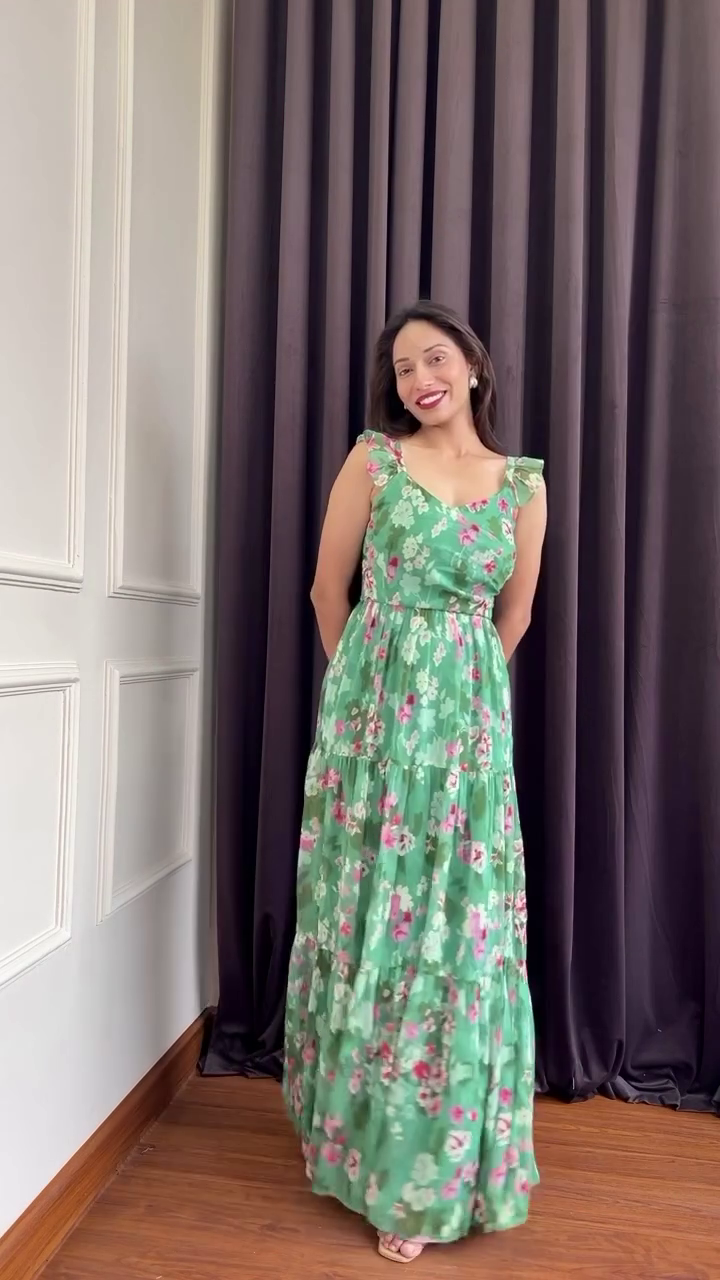 Add this elegant floral maxi dress to your collection for a graceful, flattering look that transitions effortlessly from day to night.