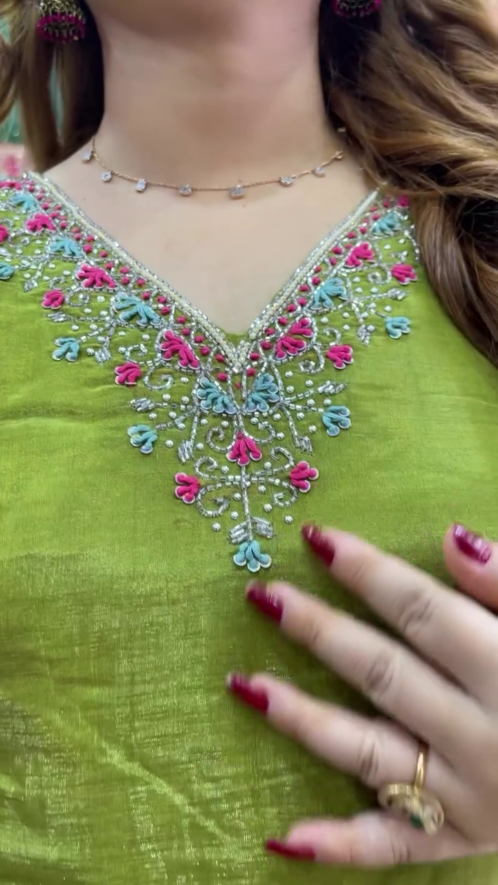 This olive green floral kurta set can be effortlessly styled with statement earrings, bangles, and traditional juttis for a festive look, or paired with minimal accessories and sandals for a more understated, elegant appearance. Its versatile color palette makes it suitable for multiple occasions, from daytime functions to evening get-togethers.