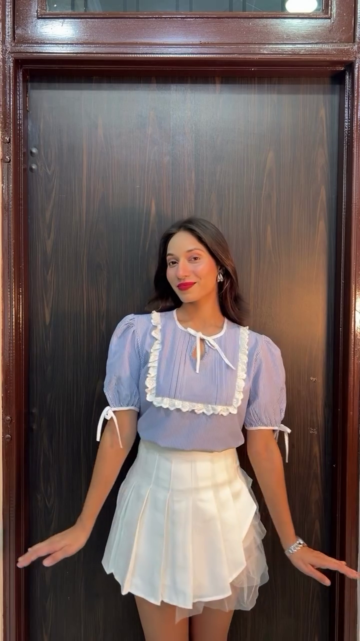 The front tie-up detail adds a stylish and adjustable feature while enhancing the aesthetic appeal of the top. This lace-up design not only adds charm but also allows you to customize the fit according to your comfort. The square neckline further enhances the modern look while keeping the design balanced and elegant.