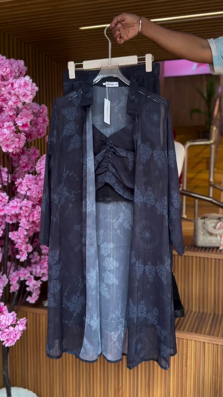 This shirt features a relaxed fit, providing ease of movement while maintaining a polished and stylish appearance. The spread collar adds a classic touch, enhancing the neckline with sophistication. The self-design lace detailing subtly enhances the shirt’s texture and charm, giving it a feminine and refined look without overwhelming the design.